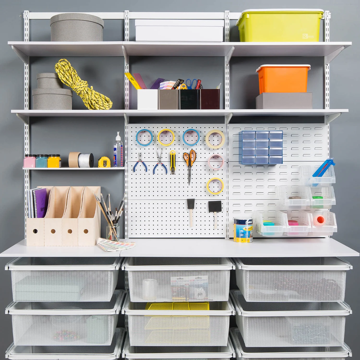The Double Slot Wall Strip & Bracket system is a versatile wall-mounted strip and bracket system that can be completely customised to suit your needs; the ideal option if you’re looking for a little more space. It is perfect for the home, office, bathroom, kid’s room, garage, shed or kitchen.