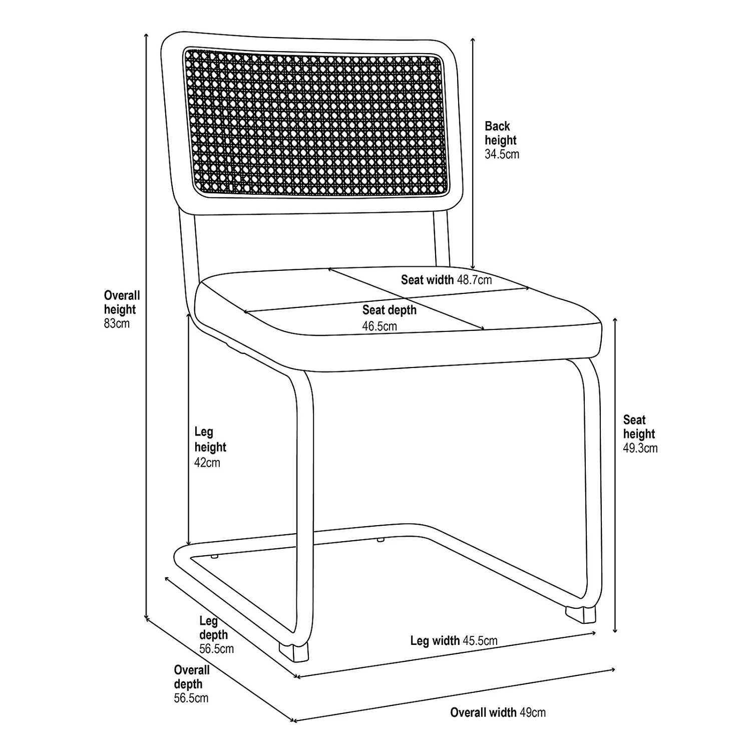 Classic cantilever design with a vintage twist. Rory oozes original style with its sleek curved metal base and woven rattan back rest. We’ve upholstered these dining chairs with soft tan coloured fabric for added comfort, perfect for those cosy meals with family and friends.