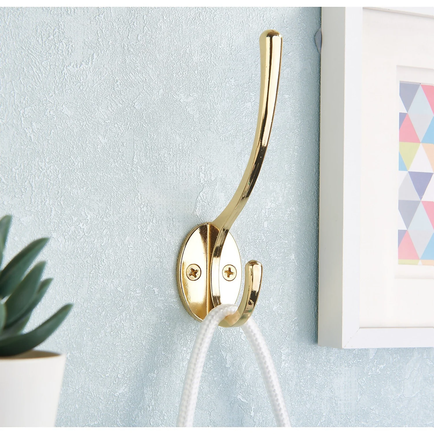 Victorian style double hook in a durable polished brass finish.